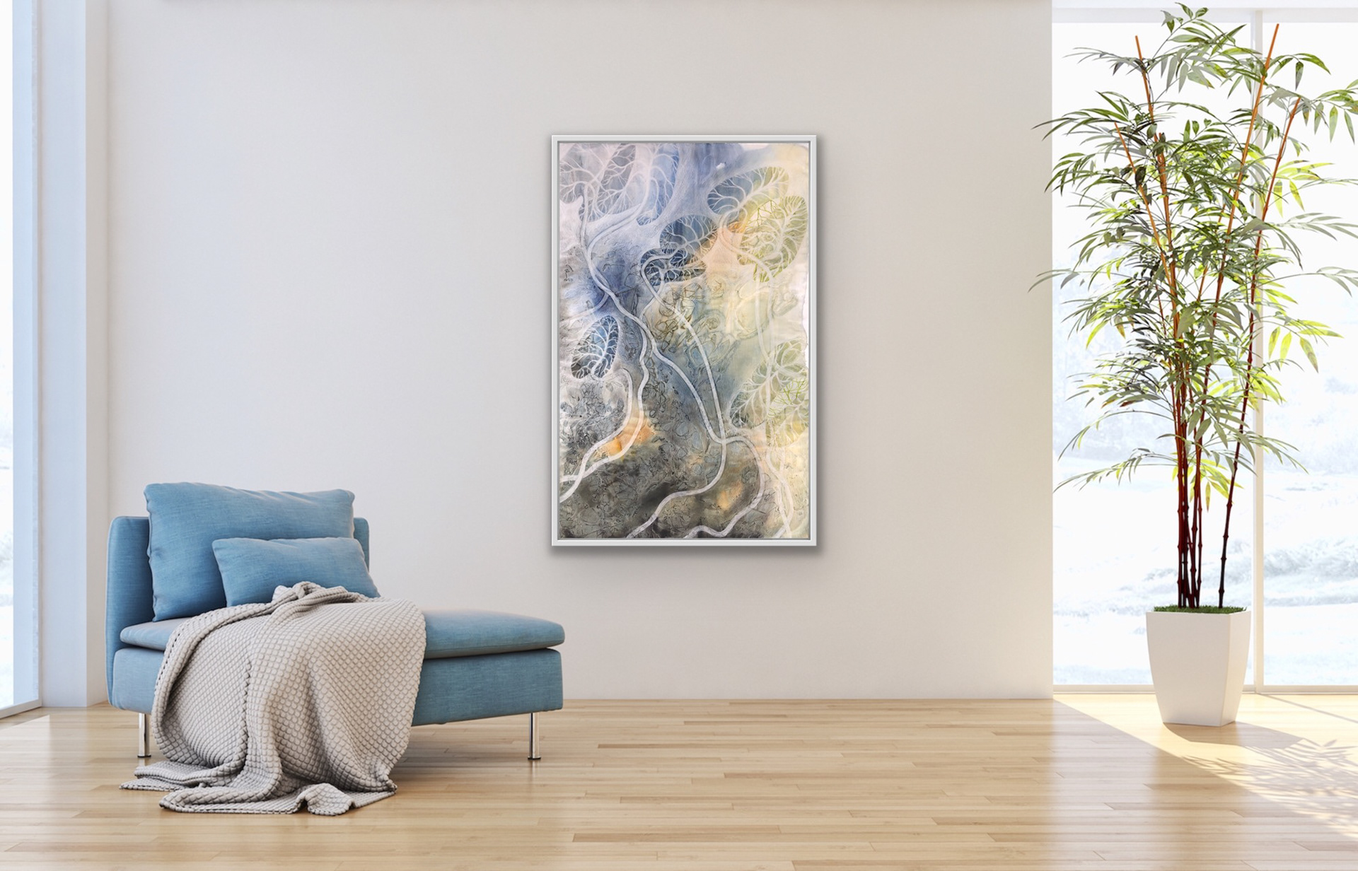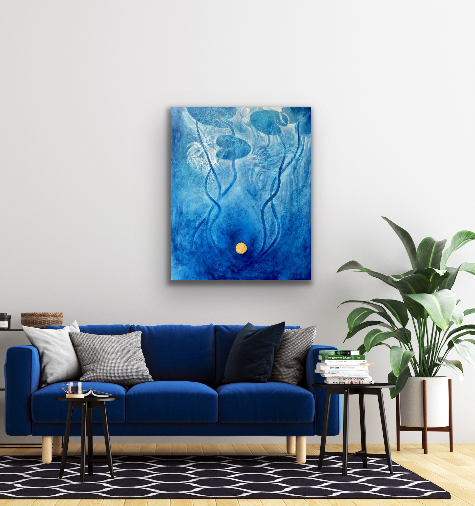 Do you have a special request for your home or your workspace? Paintings can be made to fit your size requirements and you can refer to colors and themes from my portfolio that you like. The finished outcome will always be a one of a kind and the creative process needs to be free but you will get a motif and colors according to your preference. For example if you go for water lilies from the series "Arrivals", the sculptural paintings from the series "Unfolds" or perhaps a mandala shape from the series "Primordials", they can be made in a multitude of ways and colour schemes.